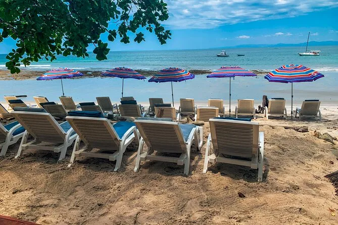 Steig an Playa Herradura in einen Katamaran und segle über den Golf von Nicoya zur abgelegenen Playa Fantasia – nur per Boot erreichbar. Schwimm, paddleboarde oder entspann in Hängematten unter wildem Dschungel, während bunte Aras über dir kreisen. Genieße ein frisches Mittagessen vom Privatkoch und lass bei Cocktails die Seele baumeln, bevor es zurück nach Jaco geht, wenn die Sonne langsam untergeht.