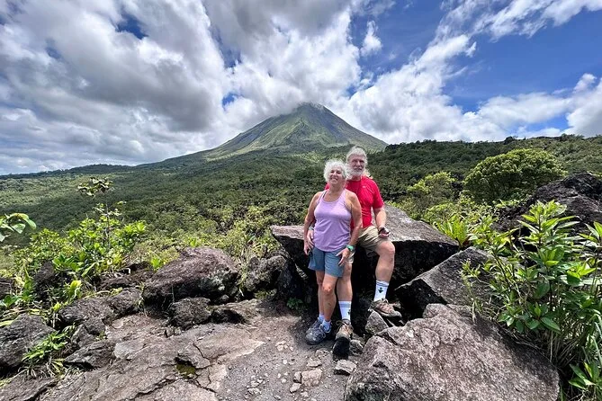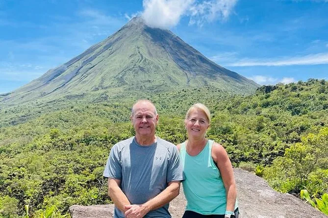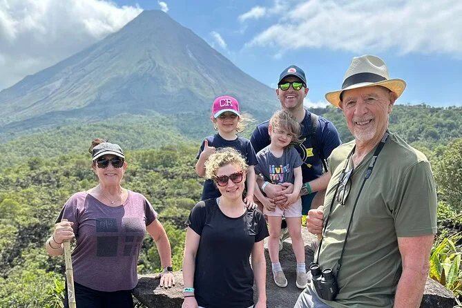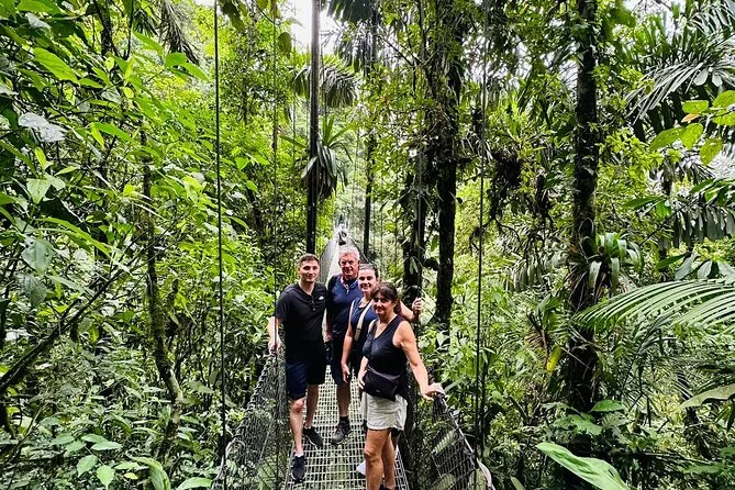 Erkunde die Hängebrücken hoch über dem Regenwald von Costa Rica bei La Fortuna, schwimme unter einem beeindruckenden Wasserfall, genieße ein Mittagessen bei einer einheimischen Familie auf ihrer Ranch und wandere auf alten Lavawegen am Arenal Vulkan – alles mit freundlichem Guide und Hoteltransfer.