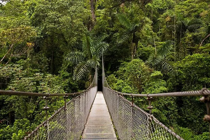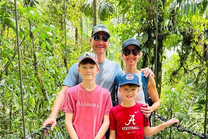 Dein Tag beinhaltet die Abholung und Rückfahrt vom Hotel in La Fortuna oder Arenal, Eintrittsgelder für alle Parks und Attraktionen wie Mistico Hängebrücken Park und Wasserfall von La Fortuna, geführte Wanderungen mit Snacks sowie ein traditionelles costa-ricanisches Mittagessen von einer einheimischen Familie, bevor es im klimatisierten Fahrzeug zurückgeht.