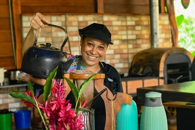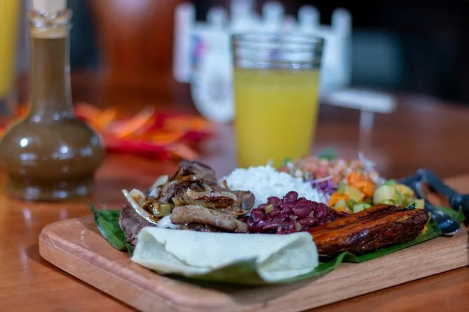 Ein traditionelles costa-ricanisches Mittagessen auf einer Familienranch mit frischen Zutaten; vegetarische Optionen sind auf Anfrage bei der Buchung möglich.