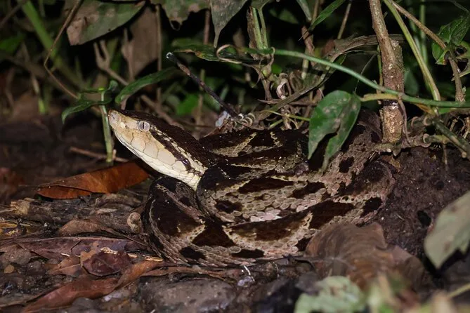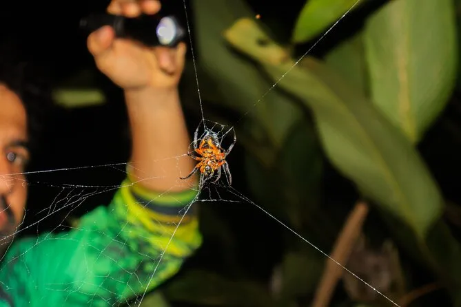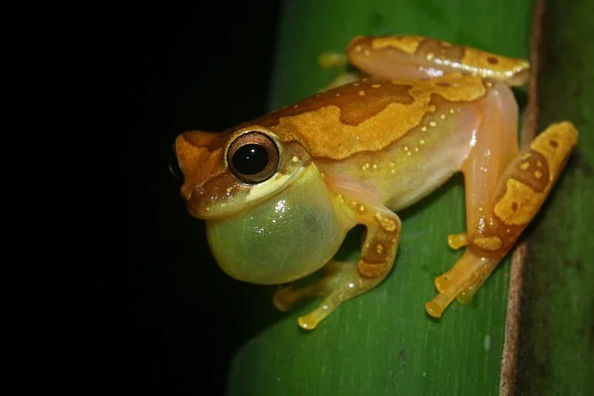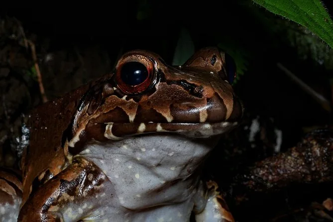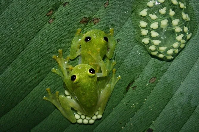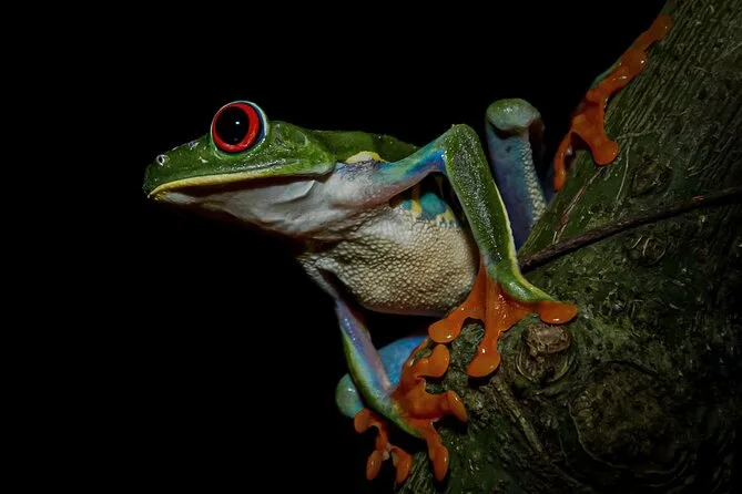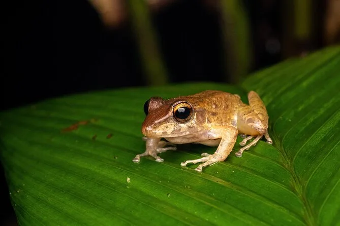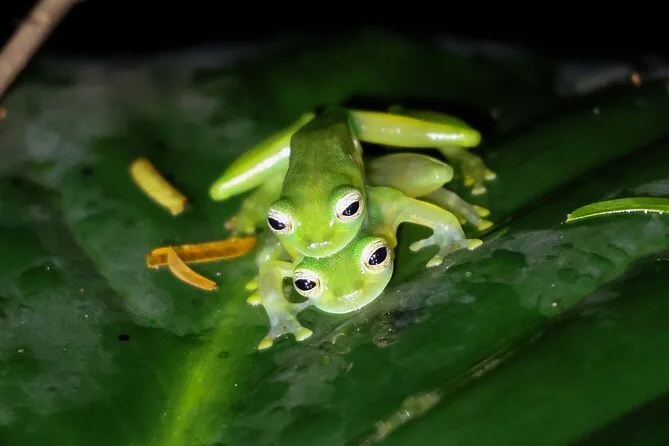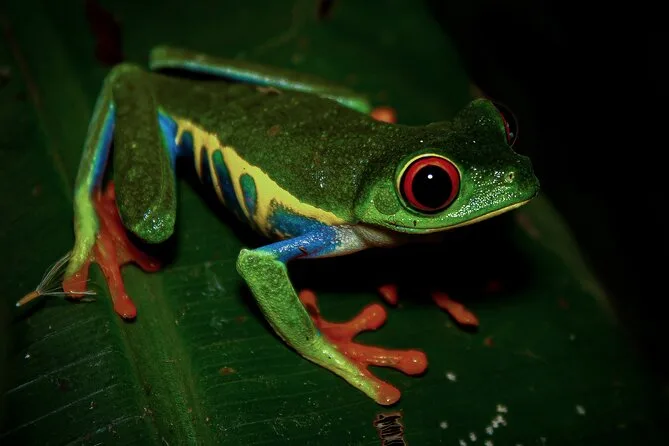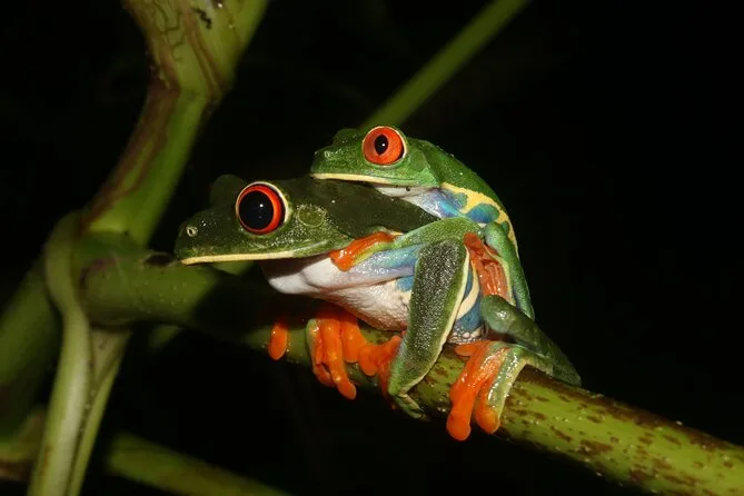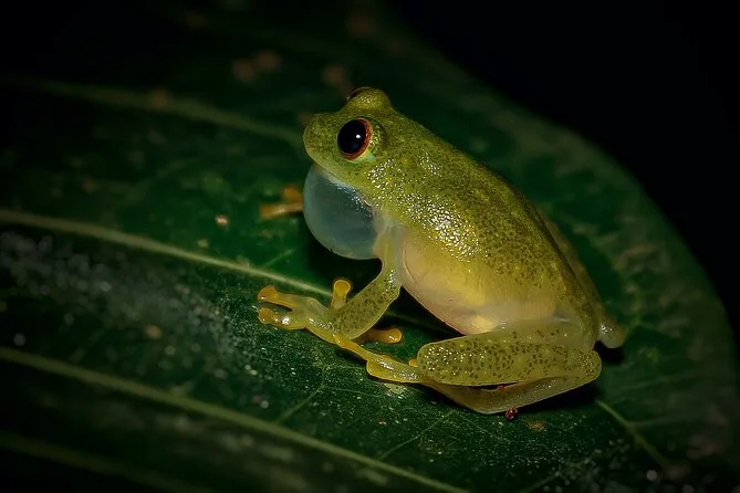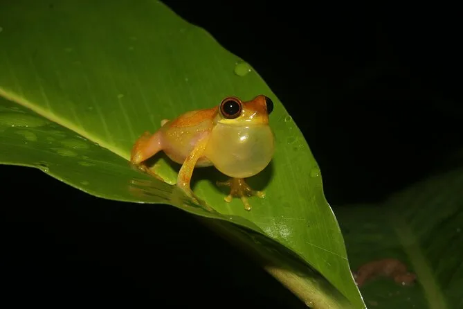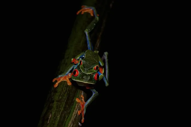 Erkunde La Fortunas Regenwald bei Nacht in kleiner Gruppe mit lokalem Guide. Suche mit Taschenlampe nach Fröschen, Faultieren und anderen nachtaktiven Tieren. Freu dich auf matschige Pfade, spannende Tierbeobachtungen und stille Momente unter den Bäumen. Inklusive Guide, Eintritt, Taschenlampe, Wasser und vielleicht der einen oder anderen Geschichte zum Erzählen.