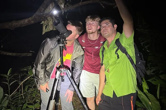 Dein Abend umfasst den geführten Eintritt in den Regenwald bei La Fortuna mit einem erfahrenen lokalen Guide, der deine kleine Gruppe begleitet; Taschenlampen sind inklusive, du brauchst keine eigene mitzubringen; die Parkeintrittsgebühren sind abgedeckt; Wasserflaschen werden verteilt; außerdem gibt es sichere Parkplätze in der Nähe, falls du selbst anreist.