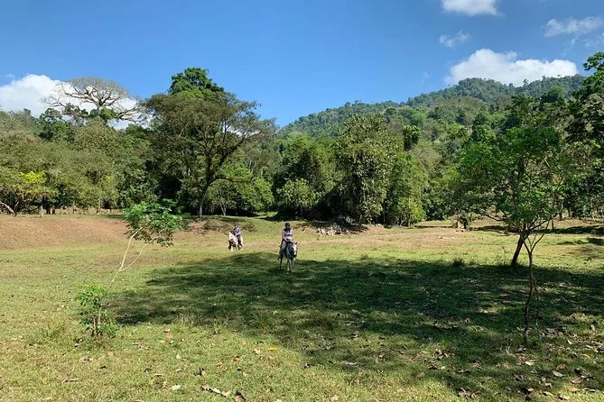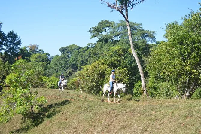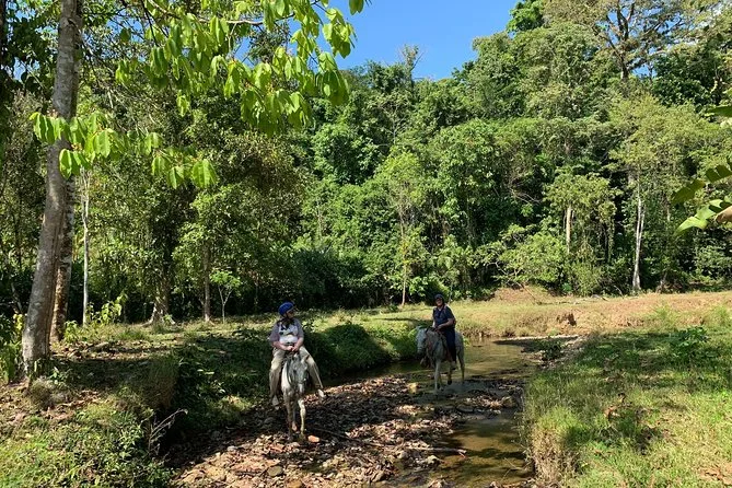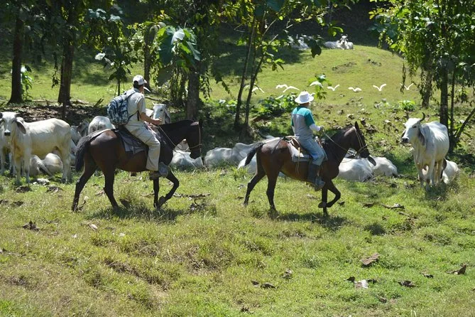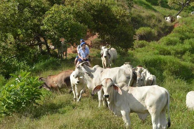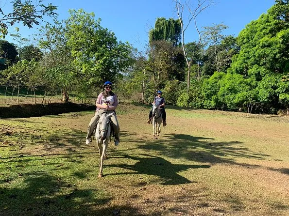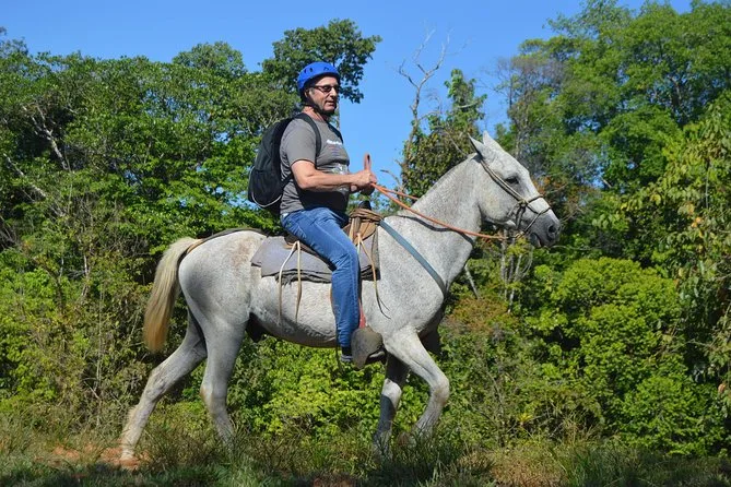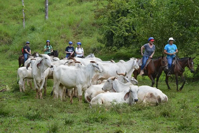 Dein Tag beginnt mit der Abholung vom Hotel im klimatisierten Fahrzeug, gefolgt von einer geführten Reittour mit Don Juan oder seinem Sohn Randall über ihre Familienranch bei La Fortuna. Danach gibt es eine kurze Dschungelwanderung, um Tiere und uralte Bäume zu entdecken, Zeit an einem der Wasserfälle (Handtücher inklusive), unterwegs Fotos, Wasser zum Trinken und zum Abschluss ein hausgemachtes costa-ricanisches Mittagessen mit Blick auf den umliegenden Regenwald, bevor es zurückgeht.