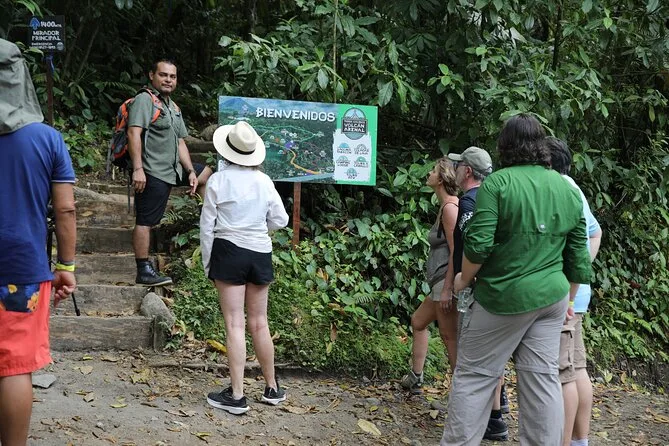 Dein Tag umfasst die Abholung und Rückfahrt von ausgewählten Hotels in La Fortuna, eine geführte Regenwaldwanderung rund um den Vulkan Arenal mit einem lokalen Experten, der spannende Geschichten erzählt, ein traditionelles costa-ricanisches Mittagessen (vegetarisch auf Anfrage) und Zeit zum Entspannen in den natürlichen heißen Quellen am Fluss Choyin, bevor es zurück in die Stadt geht.