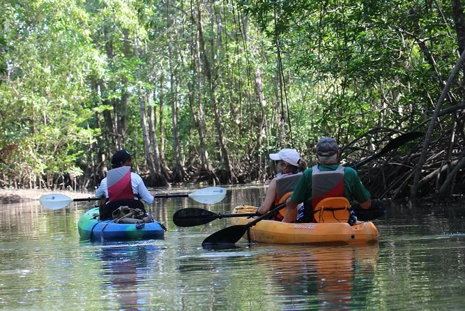 Dein Tag beinhaltet Hoteltransfer (von ausgewählten Hotels), alle Steuern und Gebühren, Kajakausrüstung mit Schwimmwesten (Einzel- oder Doppelkajaks), Begleitung durch einen lokalen Experten in den Mangroven von Damas Island, Snacks unterwegs sowie ein frisches costa-ricanisches Mittagessen vor der Rückfahrt nach Manuel Antonio.