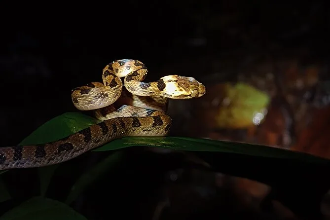 Dein Abend beinhaltet Hotelabholung und Rückfahrt (oder kostenlose Parkplätze, falls du selbst fährst), Wasserflaschen (eigene Flasche mitbringen), einen erfahrenen lokalen Guide mit Digiskop-Funktion für tolle Tierfotos auf deinem Handy, Taschenlampen während der gesamten Tour – und genug Zeit, um Fragen zu stellen oder einfach nur dem Dschungel beim Atmen zuzuhören.