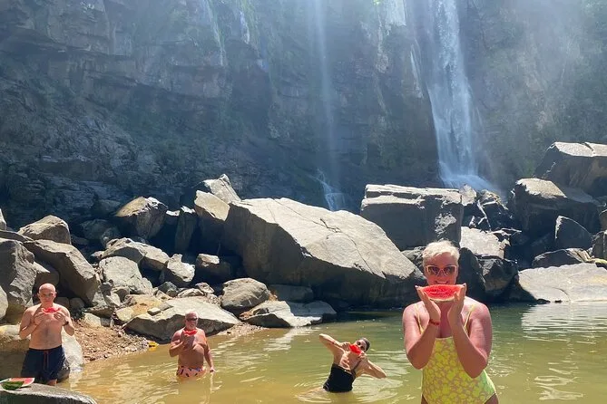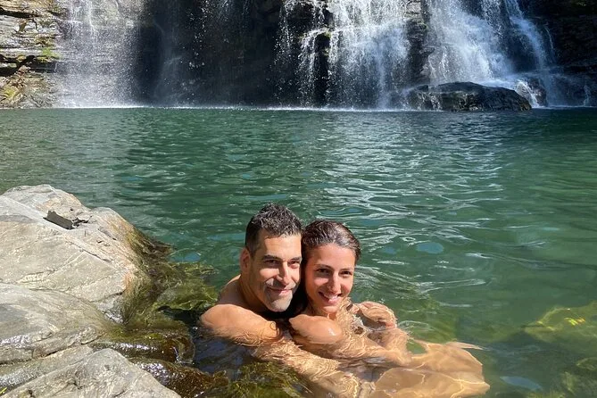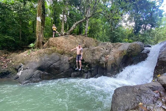 Du schwimmst unter zwei Wasserfällen – inklusive den berühmten Zwillingskaskaden von Nauyaca –, genießt frische Kokosnuss an einem einsamen Strand, erkundest Dominicals entspannte Surferstraßen mit Kaffee oder Smoothie in der Hand und teilst ein Mittagessen nach Wanderungen im Regenwald. Freu dich auf Lachen, matschige Schuhe und kleine Überraschungen bei diesem Ganztagesabenteuer von Abholung bis Rückfahrt.
