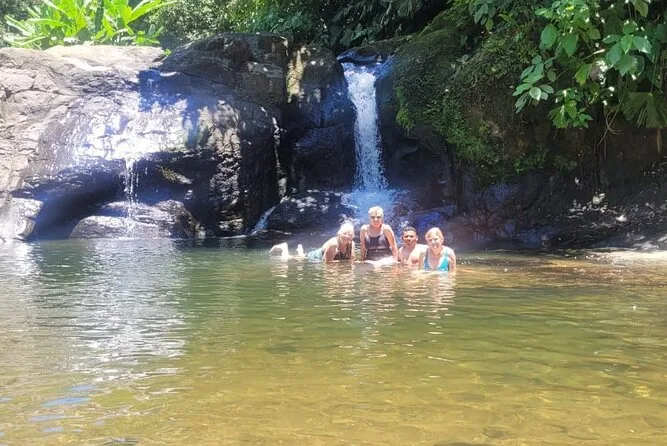 Ja, es gibt Zeit zum Schwimmen im großen Becken unter dem Wasserfall in Talamanca.