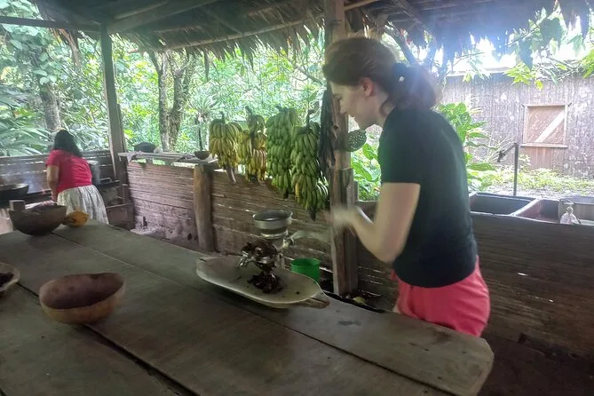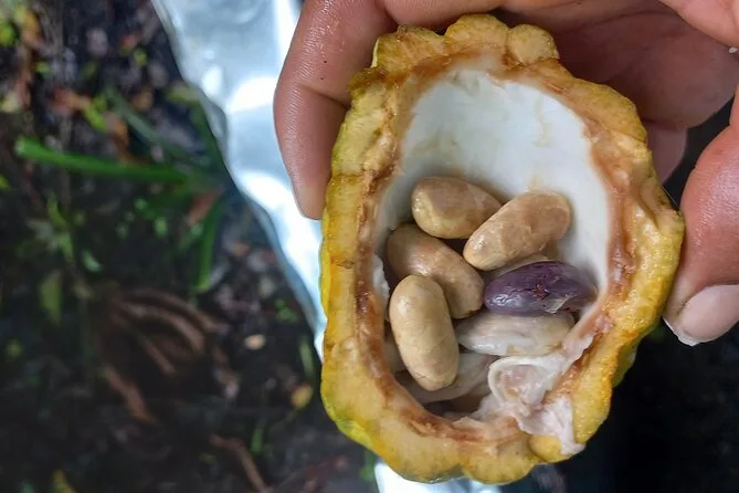Dein Tag beginnt mit Abholung in Puerto Viejo, dann verbringst du Zeit mit einer Bribri Familie, lernst über Heilpflanzen und Schokoladenherstellung in ihrem Garten, probierst frische Kakaofrüchte und selbstgemachte Schokolade, bevor du einen Bergwasserfall besuchst, dort schwimmst und frisches Obst genießt – danach geht’s zurück.