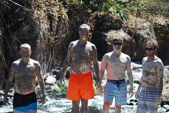 Dein Tag beinhaltet Wasserflaschen während aller Aktivitäten sowie Snacks unterwegs; Bier gibt es während des Transports; ein komplettes lokales Mittagessen im Restaurant; Zugang zu Duschen und Handtüchern nach dem Flussabenteuer; alle Ausrüstungen für Reiten, Ziplining, Rafting oder Tubing; plus Zeit für Vulkan-Schlammpackung und Entspannung in den heißen Quellen vor der Rückfahrt.