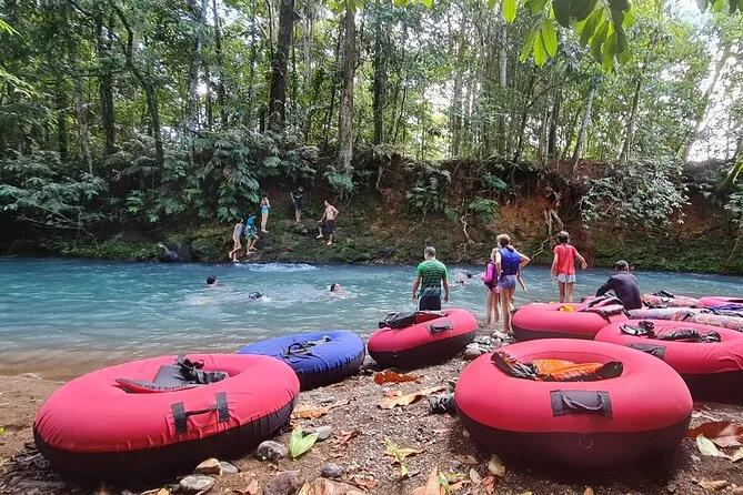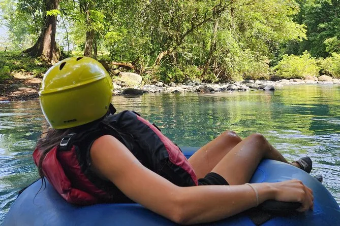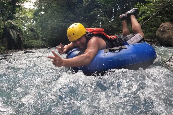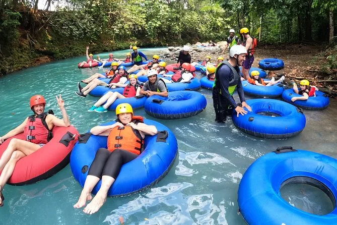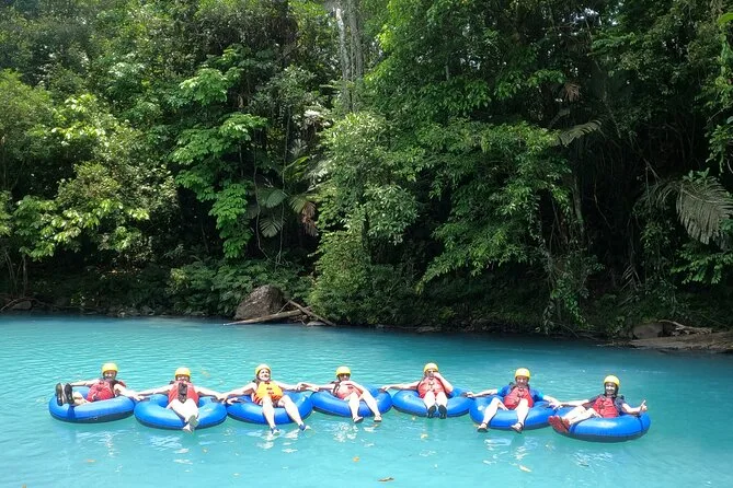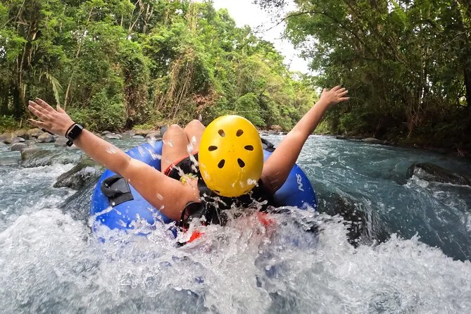 Dein Tag beinhaltet alle Sicherheitsausrüstungen wie Helm und Schwimmweste sowie den Reifen; Handtücher zum Abtrocknen nach dem Treiben; und Snacks am Flussufer, damit du beim Entdecken des Rio Celeste mit deinem Guide nicht hungrig bleibst.