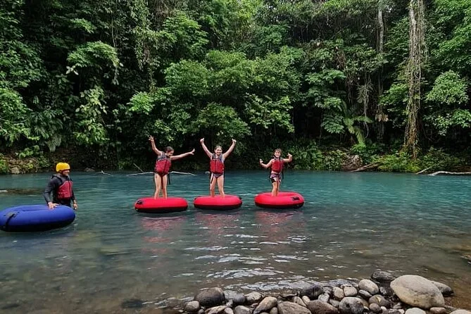 Du gleitest durch das leuchtende Wasser des Rio Celeste, begleitet von einem lokalen Guide, der dir Tiere zeigt und spannende Geschichten erzählt. Sanfte Stromschnellen, Snacks am Flussufer und jede Menge Spaß inklusive – dazu alles an Ausrüstung, was du brauchst. Ein Erlebnis, das noch lange nachwirkt.