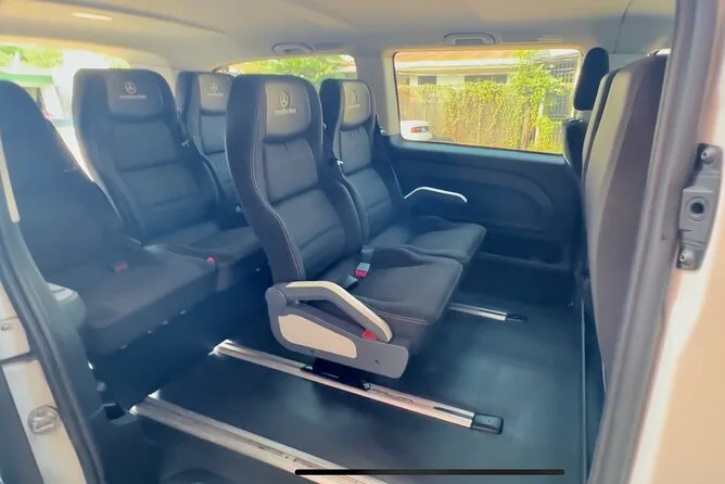 Der private Van bietet bequem Platz für bis zu sechs Passagiere.