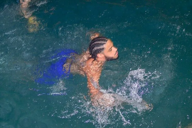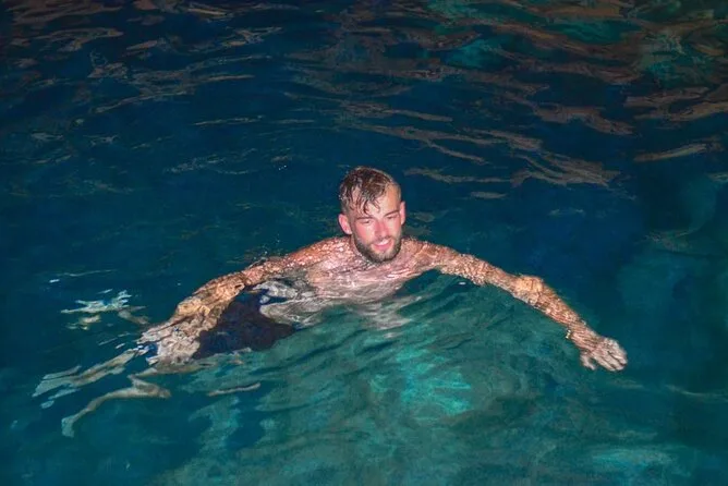 Dann ging es zur Höhle. Ehrlich gesagt war ich mir nicht sicher, ob ich in einem unterirdischen Fluss schwimmen wollte – ich stellte mir das eiskalt oder voller Fledermäuse vor. Aber als ich in das kühle, blaue Wasser stieg, fühlte es sich an, als würde mein Kopf einen Reset-Knopf drücken. Es war still, abgesehen von unseren Stimmen, die von den Felsen widerhallten, und man sah Sonnenstrahlen durch die Spalten über uns fallen. Manche sprangen sofort rein; ich brauchte einen Moment, aber ja, es tat richtig gut. Es roch leicht mineralisch und erdig, fast beruhigend.