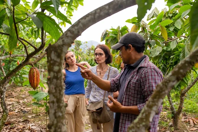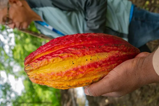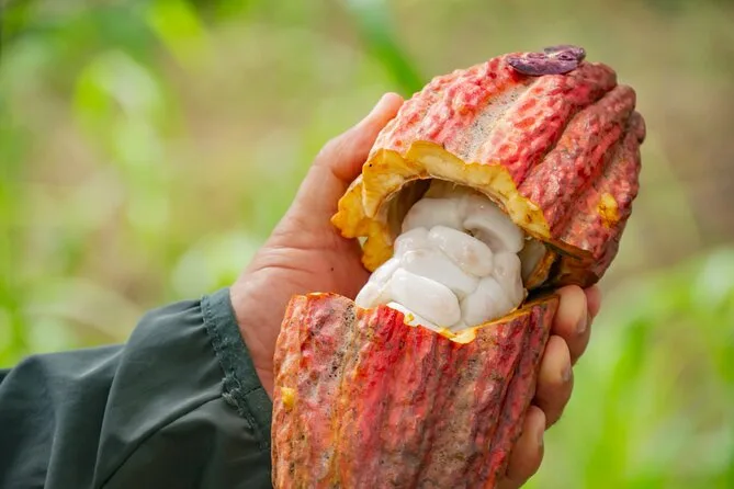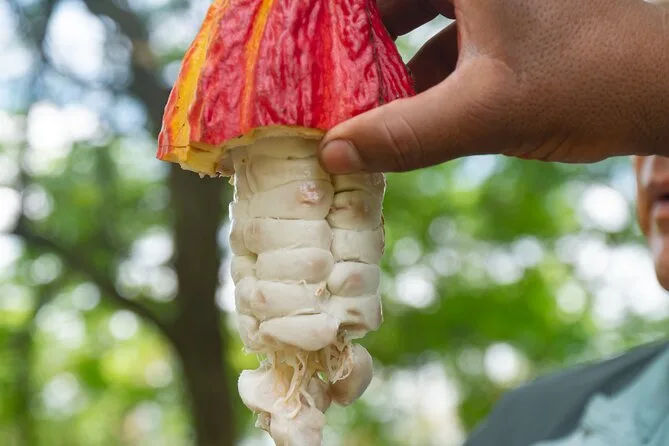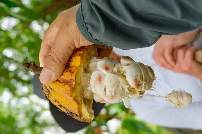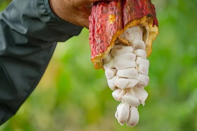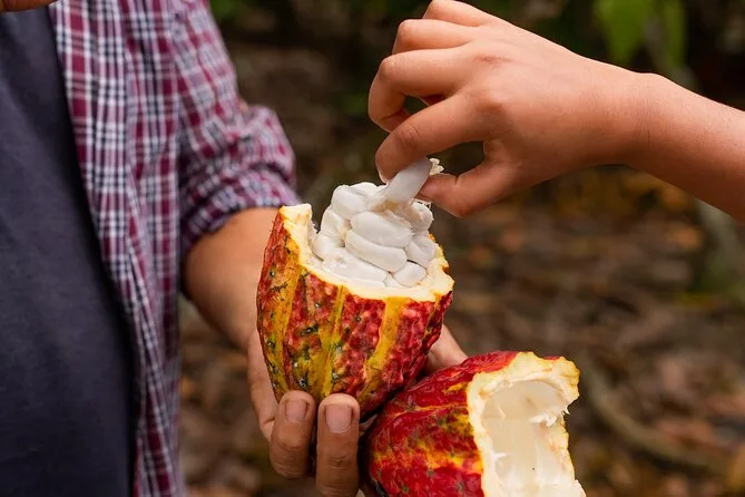 Spaziere durch grüne Kakaoplantagen bei Guayaquil mit einem lokalen Guide, koste frischen Kakaosaft direkt aus der Schote und genieße ein hausgemachtes Mittagessen mit Zutaten direkt von der Farm. Erfahre, wie Schokolade vom Baum bis zur Tasse entsteht – und nimm Erinnerungen an einzigartige Geschmäcker und Momente mit, die du nirgendwo kaufen kannst.