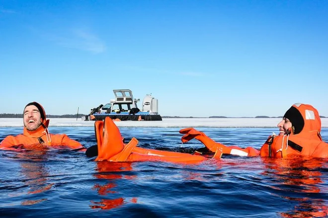 Sie fahren mit einem Hovercraft oder Eisbrecher über das gefrorene Meer, laufen auf festem Meereis und schweben sicher zwischen Eisschollen im Überlebensanzug. Nicht jeden Tag erlebt man ein Lagerfeuer auf einer einsamen Insel vor Helsinki – hier erwartet Sie ein Winterabenteuer mit echtem lokalem Flair.