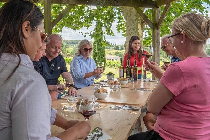 Dein Tag startet mit Abholung im klimatisierten Fahrzeug im Zentrum von Bordeaux, gefolgt von einer geführten Tour durch das Dorf Saint-Emilion. Du besuchst drei Weingüter mit insgesamt acht Weinproben (darunter Grand Cru Anwesen), genießt ein Picknick mit regionalem Käse und baskischer Wurst sowie ein Glas Wein im Château. Außerdem gibt es einen Fotostopp am Château Margaux und den gesamten Transport mit Fahrer-Guide, bevor du abends zurückkehrst.