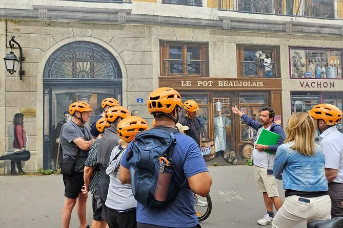 Das Erste, woran ich mich erinnere, ist unsere Guide Camille, die uns an der Ecke von Vieux Lyon zuwinkte. Sie reichte mir einen Helm und grinste: „Keine Sorge, die E-Bikes übernehmen den Großteil der Arbeit.“ Ich war etwas nervös (bin seit der Schulzeit kaum Fahrrad gefahren), aber die Straßen wirkten irgendwie einladend. Aus einer Bäckerei duftete es nach frischem Brot und Kaffee, gemischt mit dieser kühlen Stein-Atmosphäre, die man nur an solchen Orten spürt. Camille zeigte auf die Löwenstatuen an einem Haus und erzählte, dass man in Lyon überall welche findet, wenn man genau hinschaut. Dass ich beim Start schon so viel lachen würde, hätte ich nicht gedacht.