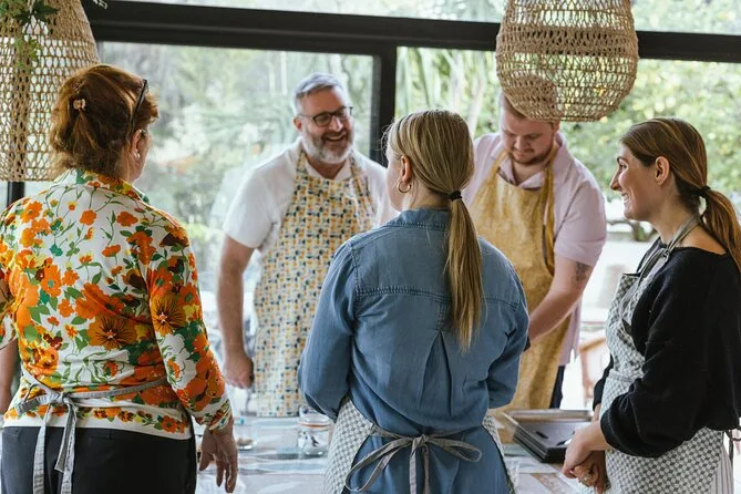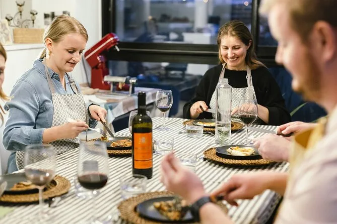 Dein Abend beinhaltet eine praktische Kochanleitung von deinen Gastgebern (Marie macht gerade ihre CAP-Ausbildung), frische saisonale Zutaten aus lokalen Märkten und Laurents Garten, gemeinsame Zeit zum Kräuter- oder Zitronenpflücken draußen, alle Zutaten für ein dreigängiges Menü (Vorspeise, Hauptgang – meist Ravioli – und Dessert), hausgemachten Likör zum Empfang sowie reichlich Wein beim Abendessen mit Panoramablick aufs Meer von ihrem Familienhaus nahe Nizza. Selbst die freundlichen Katzen schauen vielleicht vorbei, während ihr gemeinsam am Tisch sitzt.