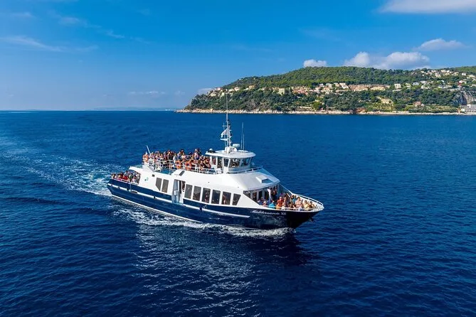 Die Fähre fährt um 9:30 Uhr in Nizza ab; bitte 30 Minuten vorher da sein, um den Gutschein gegen Tickets einzutauschen.
