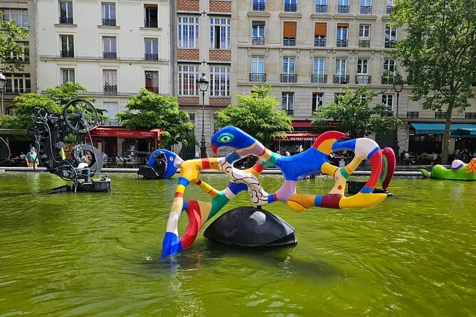 Du siehst das Centre Pompidou, die Gärten des Carnavalet Museums, den Place des Vosges, mittelalterliche Gassen, das jüdische Viertel, historische Bibliotheken und mehr.
