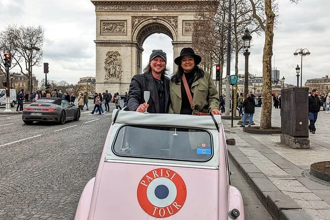Dein Tag beginnt mit der Abholung an deinem Hotel oder jedem zentralen Ort innerhalb der Pariser Stadtmauern. Ein privater Guide steuert den legendären Citroën 2CV, während klassische französische Musik die Stimmung setzt. Du fährst vorbei an bekannten Sehenswürdigkeiten und versteckten Gassen; das Aussteigen ist flexibel – such dir einen Garten, ein Museum oder den Lieblingsplatz deines Guides zum Tourabschluss aus.