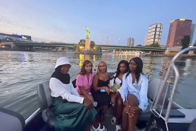 „Ihr habt wirklich Champagner mitgebracht?“ Das war mein erster Satz, als unser Guide die Flasche öffnete, gerade als wir an der kleinen Freiheitsstatue auf der Seine vorbeischipperten. Die Bläschen stiegen in die Abendluft auf, und ehrlich gesagt grinste ich schon wie ein Honigkuchenpferd. Das Boot war viel kleiner als gedacht – nur wir vier, fast mit den Knien aneinander – aber genau das machte es so besonders, fast wie unser kleines Geheimnis. Die Stadtgeräusche verblassten, und man hörte nur das Wasser gegen den Rumpf klatschen und irgendwo das Radio von einem vorbeifahrenden Frachtschiff. Gestartet sind wir am Port de Javel Haut (Vertrau deinem Taxifahrer nicht, lieber Google Maps – hab’s auf die harte Tour gelernt), direkt gegenüber von der kleinen Lady Liberty.