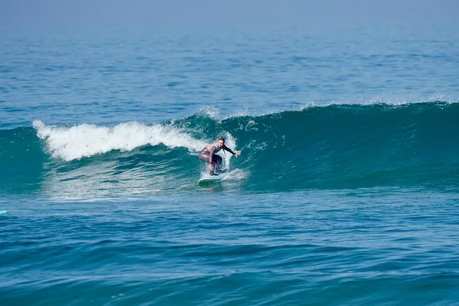 Dein Surfboard und der Neoprenanzug sind im Preis enthalten – du musst nichts extra mieten. Komm einfach bereit für Spaß auf den Wellen!