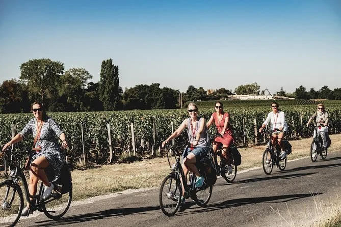 Dein Tag beginnt mit dem Treffen deines englischsprachigen Guides in Bordeaux, dann geht es mit dem Minivan nach Saint-Emilion. Dort bekommst du ein E-Bike (inklusive Helm), Wasser für die Fahrt, geführte Besuche und Verkostungen auf zwei Weingütern plus eine weitere im Ort sowie ein Picknick mit lokalen Käsesorten und Brot – alle Kosten sind vorab abgedeckt. Abends geht’s zurück nach Bordeaux.