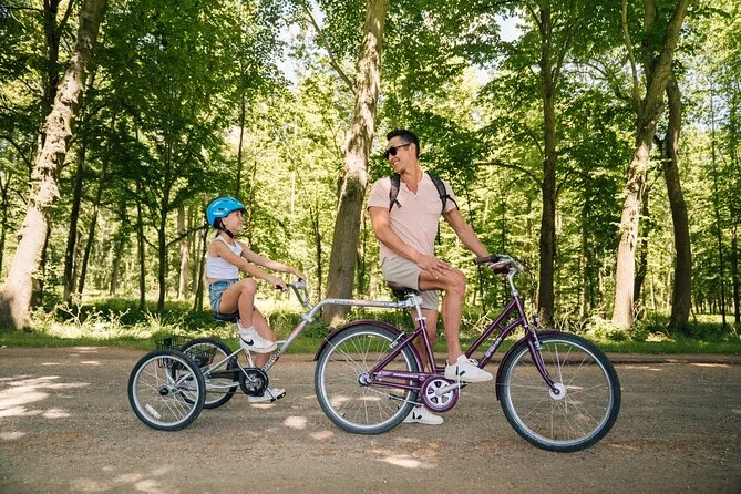 Fahrräder sind inklusive; Helme und Kindersitze gibt es auf Wunsch kostenlos dazu.