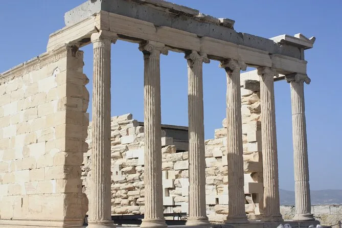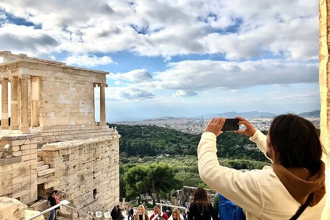 Du besuchst das Parthenon, die Propyläen, das Erechtheion (mit Karyatiden), das Odeon des Herodes Atticus, antike Theater und weitere wichtige Orte auf der Akropolis.
