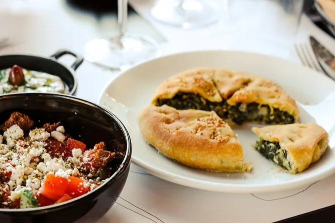 Du lernst, Spanakopita (Spinatkuchen), Moussaka, Galatopita (Milchkuchen), Ägäis-Salat und Tzatziki zuzubereiten.