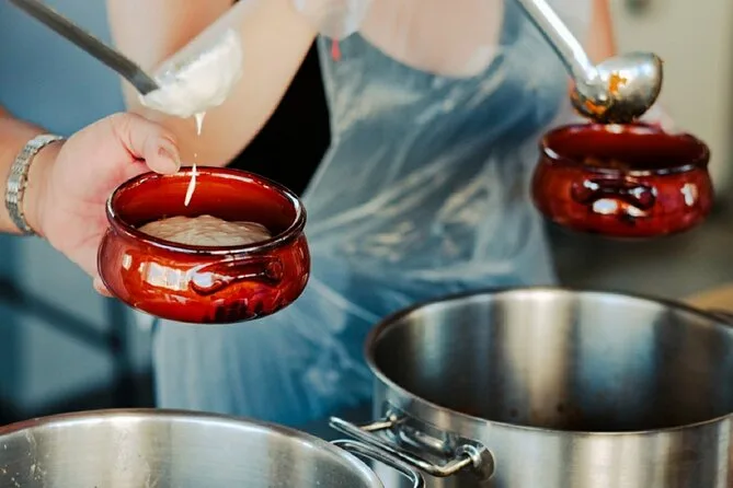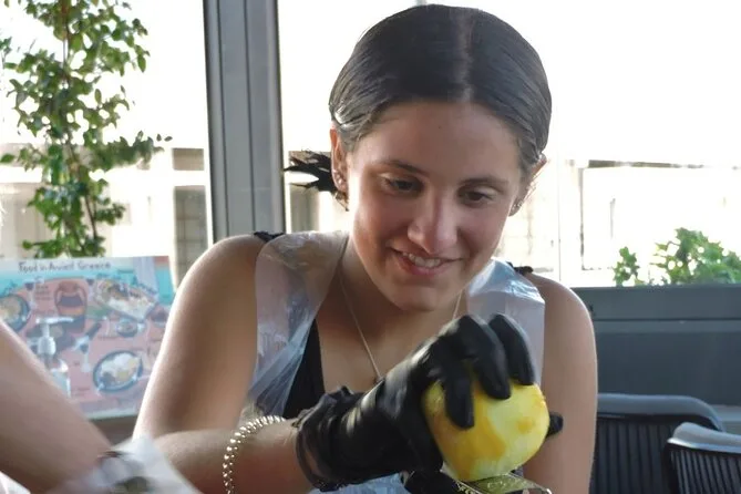 Der Abend beinhaltet alle Zutaten und die Anleitung einer Profi-Köchin im Herzen Athens, die Nutzung der Küchenausstattung während des praktischen Kochkurses sowie reichlich Essen – von Teigwaren über Salate bis zum Dessert – das anschließend als Dinner auf der Dachterrasse mit Blick auf die nachts beleuchtete Akropolis serviert wird.