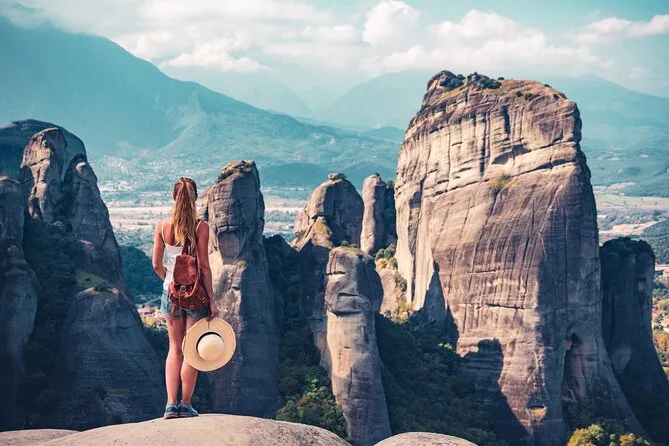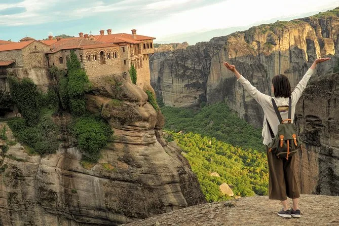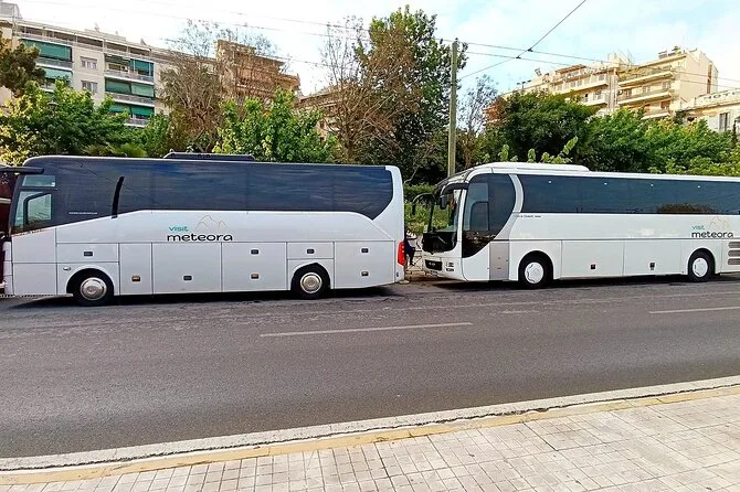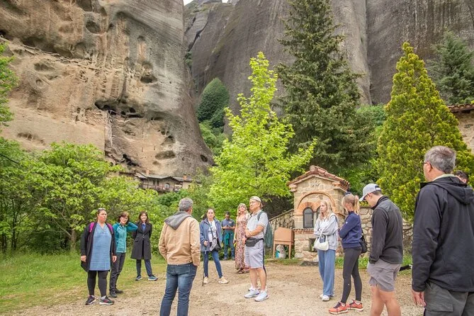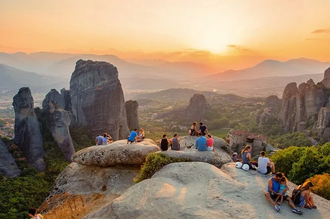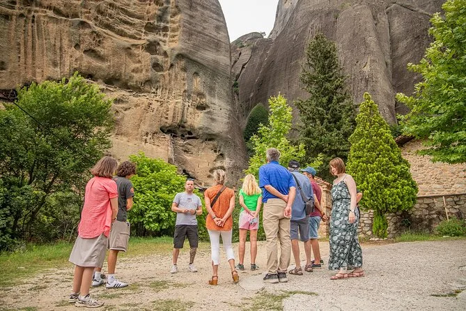 Dein Tag umfasst bequemen Transport ab Athen mit WLAN und USB-Ladeanschlüssen, geführte Besuche in drei Meteora-Klöstern plus Fotostopps bei allen sechs, exklusiven Zugang zu den Einsiedlerhöhlen von Badovas nur bei dieser Tour, Küstenpausen für Brunch und Abendessen direkt am Wasser (Mahlzeiten optional), Eintrittsgelder nicht inklusive – bitte Bargeld mitbringen –, sowie ein optionales griechisches Mittagessen in Kastraki mit Gerichten für alle Ernährungsweisen, bevor es spät abends zurückgeht.