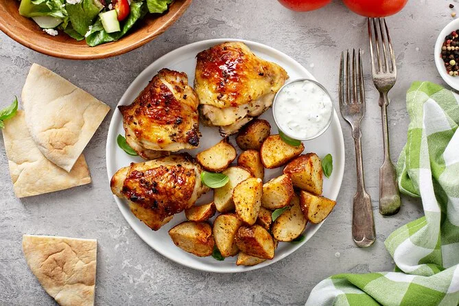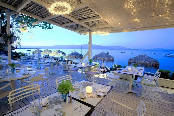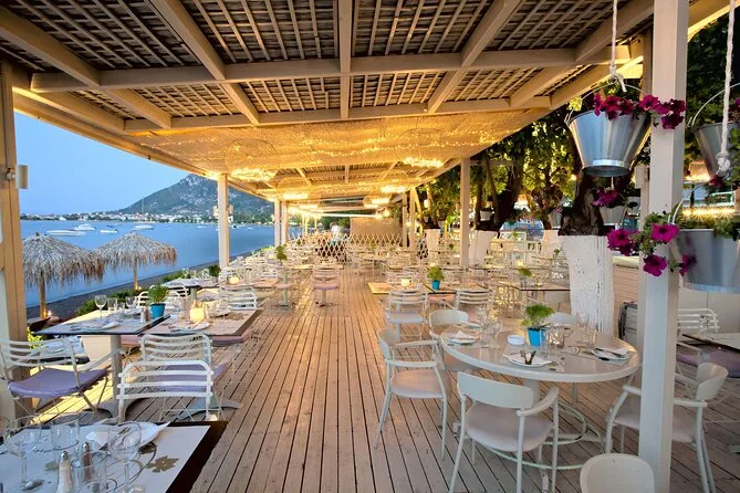 Das Mittagessen in einer traditionellen Taverne in Kastraki ist bei manchen Buchungsoptionen inklusive; Brunch und Abendessen am Meer sind optional und separat zu zahlen.