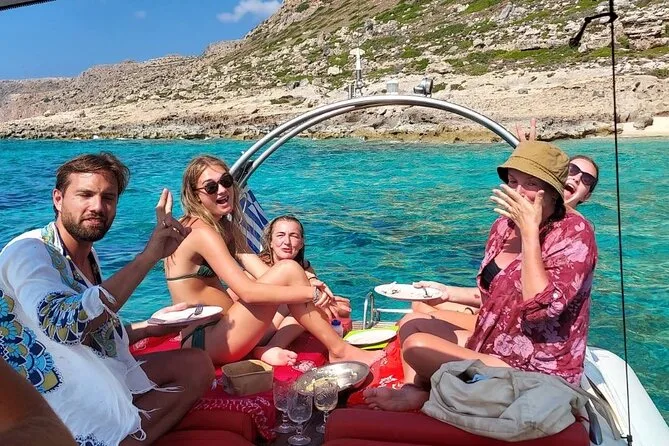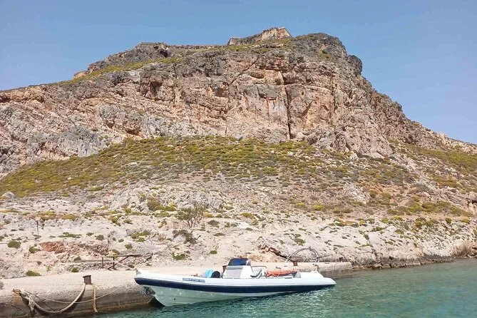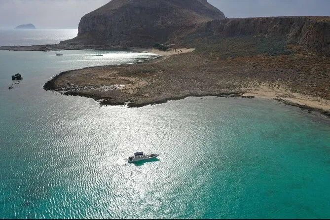 Dein Tag beinhaltet für alle an Bord Wasserflaschen und die Nutzung der Schnorchelausrüstung, damit du die klaren Gewässer an Balos Lagune und Gramvousa Insel in bester Gesellschaft erkunden kannst, bevor es zurück nach Kissamos geht.
