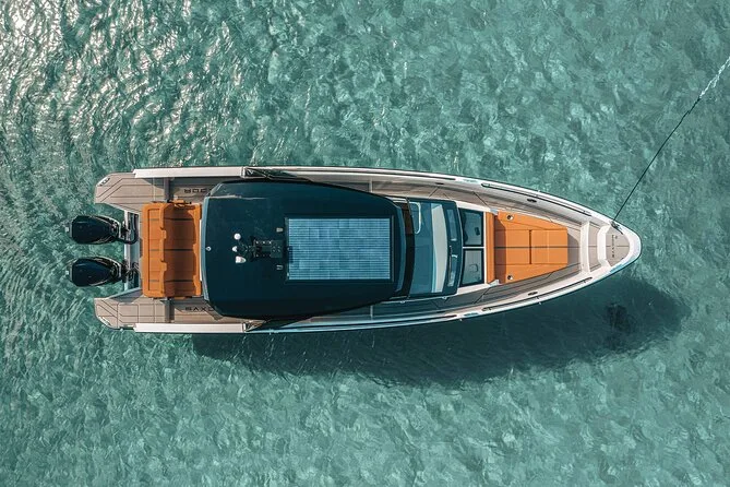 Die Luft war angenehm warm, als wir am Hafen von Adamas auf die Saxdor 32GTO stiegen – genau dieser leichte Salzduft, den man auf Milos im Frühsommer spürt. Unser Kapitän begrüßte uns mit einem kurzen Überblick (er lebt hier sein ganzes Leben und kennt jede Bucht), dann legten wir ab, während der Motor leise unter unseren Füßen schnurrte. Die Sonne stand noch hoch, wurde aber schon sanfter und warf lange Schatten über die Fischerboote am Kai.