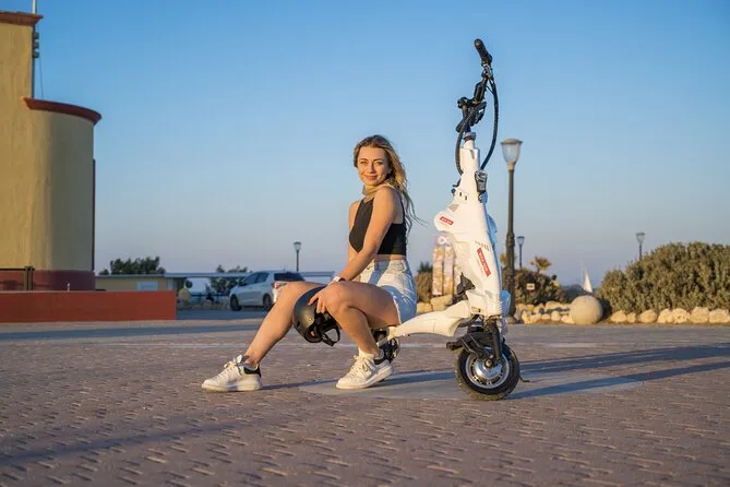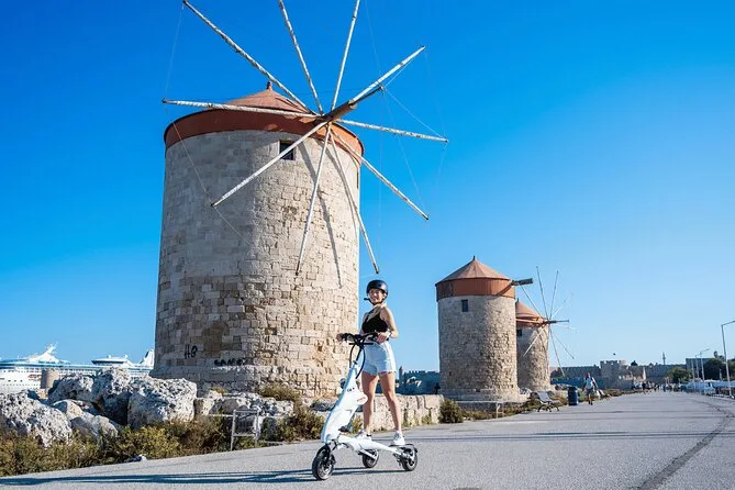 Dein Tag beinhaltet die Nutzung eines elektrischen Trikke Scooters inklusive Helm und Flaschenwasser sowie eine Haftpflichtversicherung. Vor der Tour bekommst du eine Sicherheitseinweisung und eine kurze Einführung. Mit Headsets kannst du deinen Guide während der Fahrt durch Rhodos’ historische Straßen gut verstehen – und wenn du danach eine TripAdvisor-Bewertung schreibst, erhältst du auch Fotos von deinem Abenteuer.