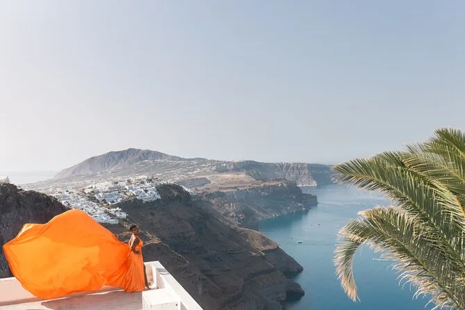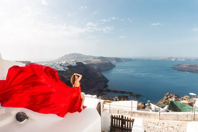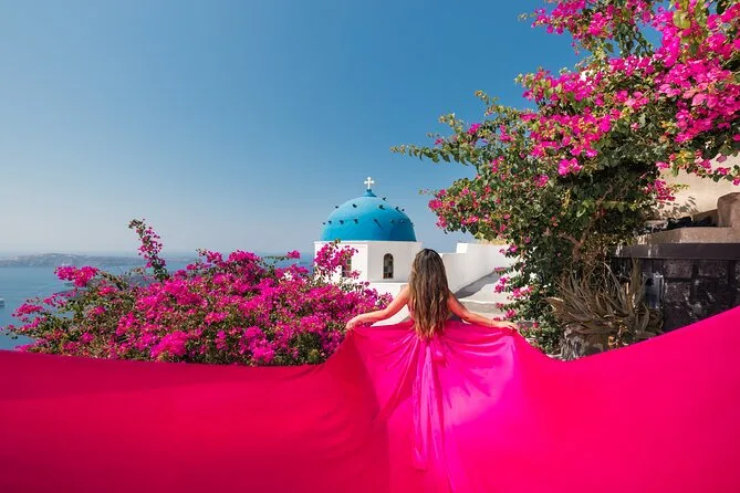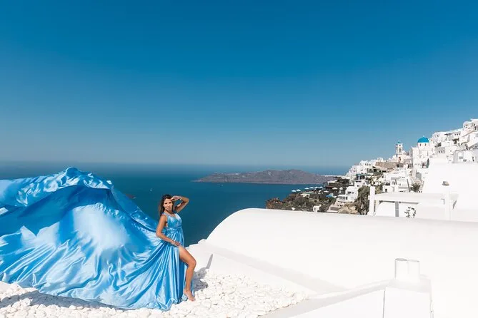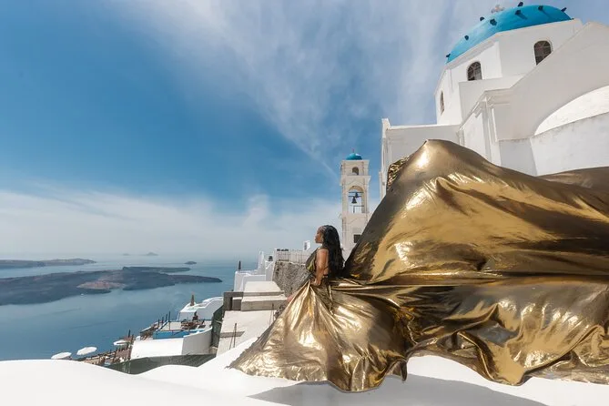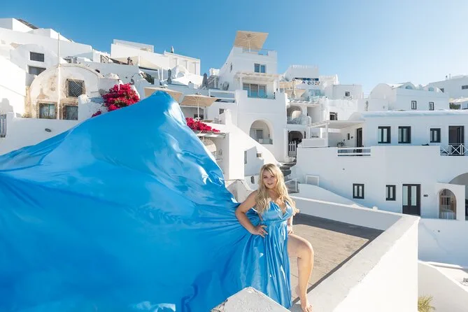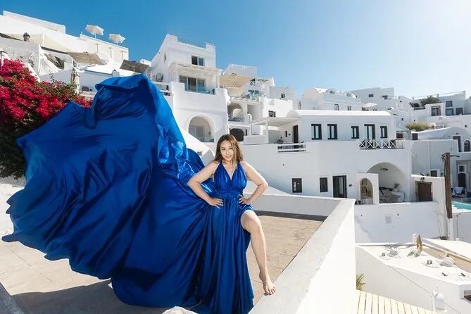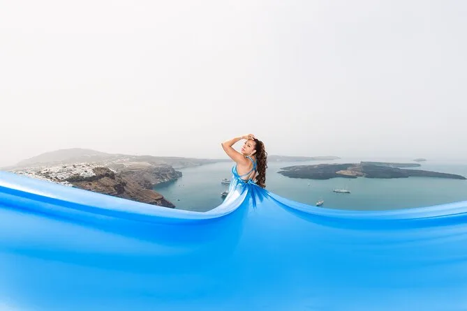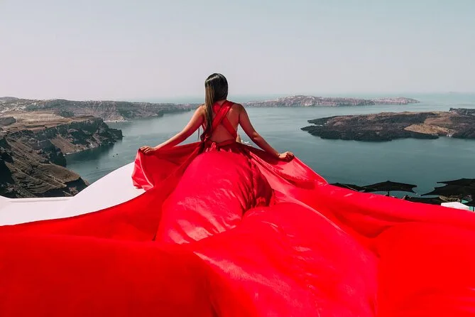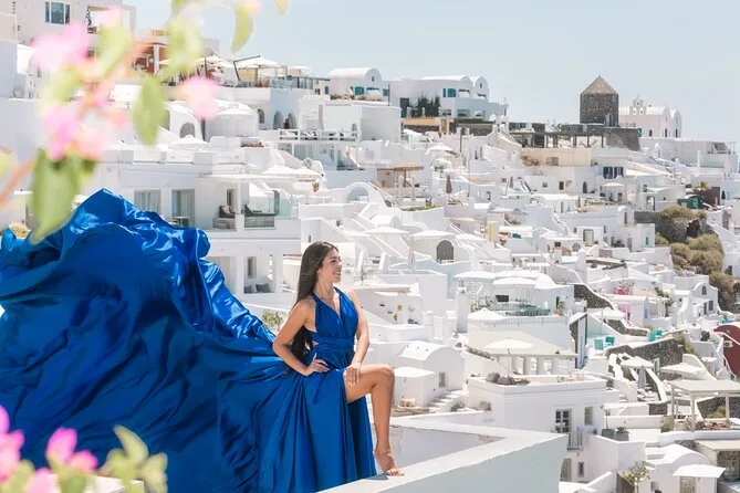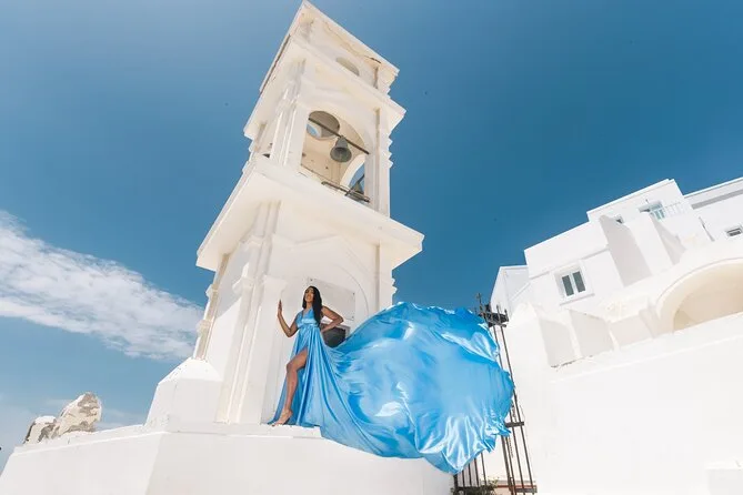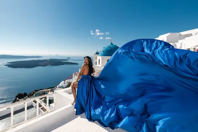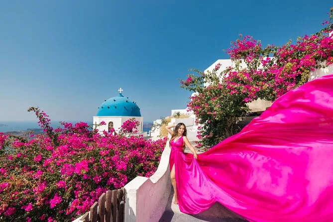 Santorini: Flying Dress Fotoshooting in Imerovigli mit privatem Transfer