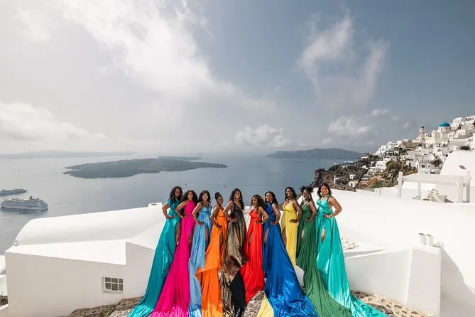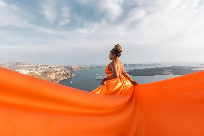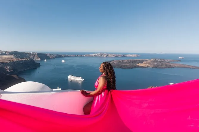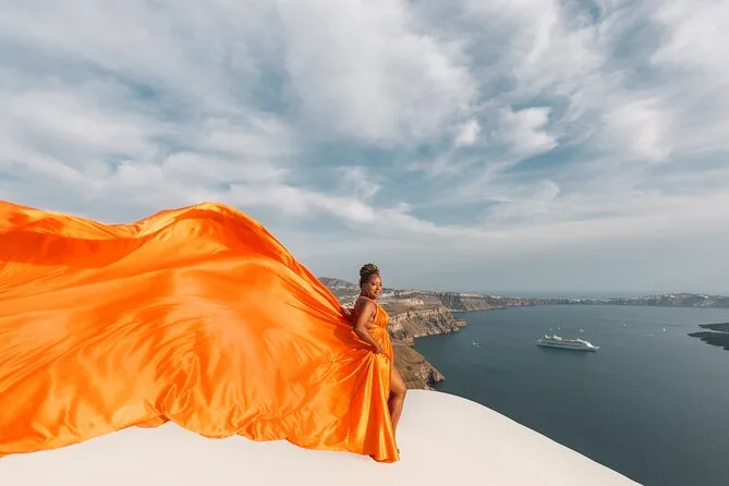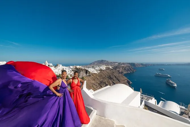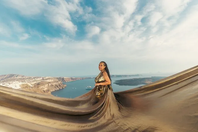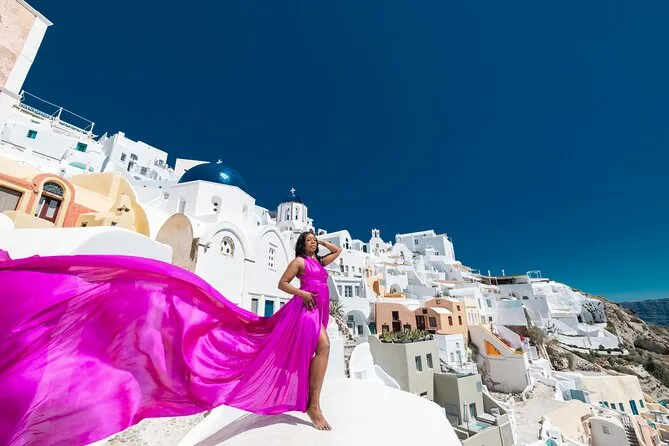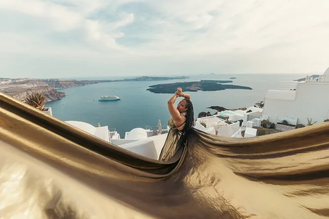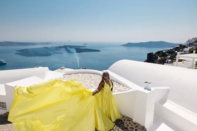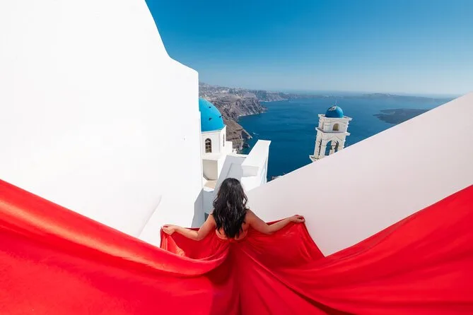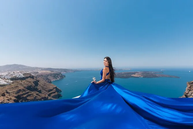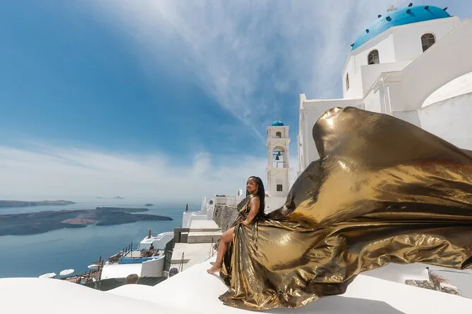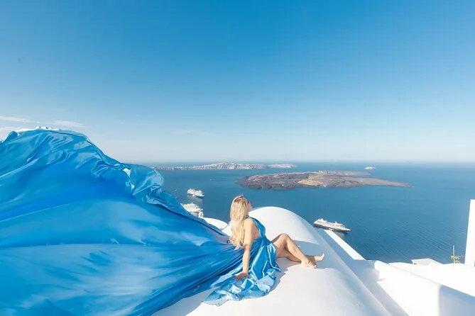 Santorini: Flying Dress Fotoshooting in Imerovigli mit privatem Transfer