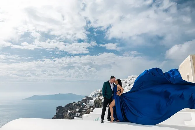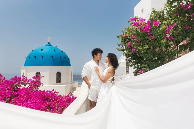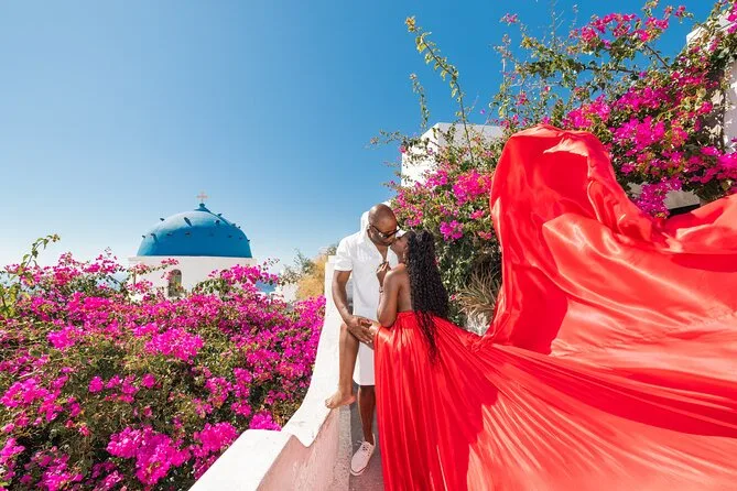 Zieh ein elegantes Flying Dress in Santorinis Imerovigli an und lass dich von herzlichen Einheimischen begleiten, die dich von Anfang an wohlfühlen lassen. Posier vor den blauen Kuppeln und auf den Dächern, während dein Fotograf authentische Momente mit Blick auf die Caldera einfängt. Inklusive privatem Hoteltransfer, Styling, allen unbearbeiteten Fotos sofort und 25 bearbeiteten Bildern später – so bleiben unvergessliche Erinnerungen.