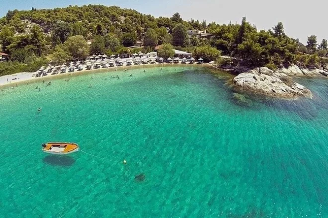 Als wir am Kalogria Strand ankamen, fiel mir sofort der Sand auf – weich, fast pudrig und selbst am frühen Morgen angenehm warm unter den Füßen. Das Wasser hier ist etwas ganz Besonderes: flach und kristallklar, sodass man winzige Fische um die Knöchel huschen sieht. Wir beobachteten ein paar Kinder, die beim Schnorcheln an den Felsen lernten, während ihre Eltern entspannt auf Luftmatratzen trieben. Wenn du gerne weit hinausschwimmst oder einfach sanft mit den Wellen treiben möchtest, ist dieser Ort perfekt. Es gibt auch eine kleine Strandbar mit kalten Frappés – gönn dir unbedingt einen, wenn du nach dem Schwimmen einen Koffeinschub brauchst.