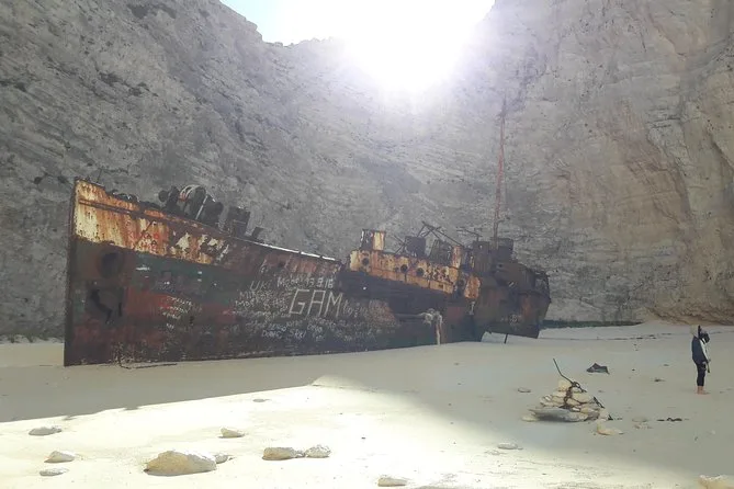 Nein, aus Sicherheitsgründen ist das Betreten des Wrackstrands nicht erlaubt; stattdessen legt das Boot bei gutem Wetter an einem nahegelegenen Strand wie Sfogio oder Golden Beach an.