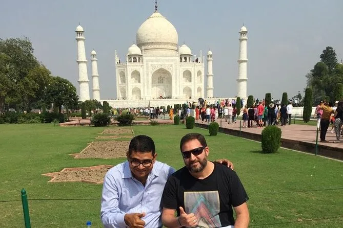 Die Hin- und Rückfahrt dauert etwa 12–14 Stunden, inklusive Fahrtzeit zwischen Delhi und Agra sowie Besichtigungen.