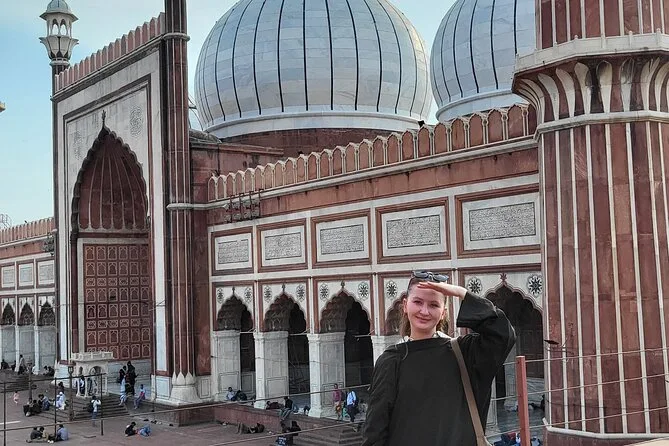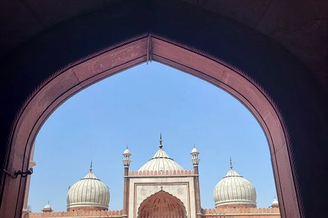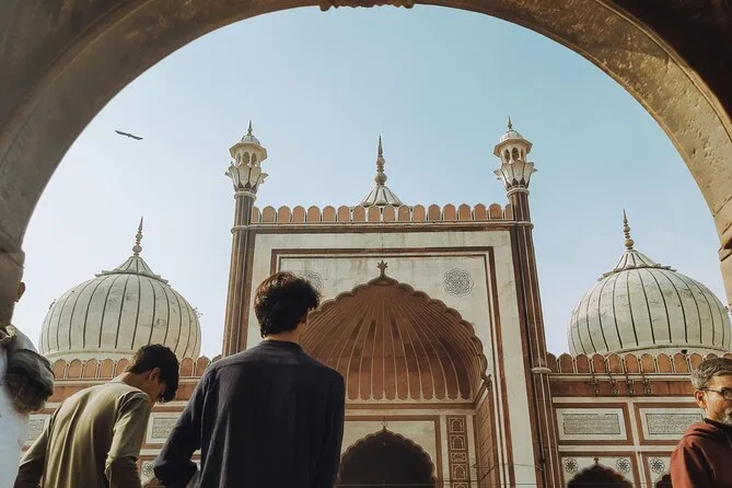 Dein Tag umfasst eine kurze Rikscha-Fahrt durch Old Delhis Gassen, einen lokalen Historiker als Guide, der spannende Geschichten erzählt, optionalen Eintritt für Jama Masjid je nach Buchung und bei Bedarf Abholung und Rückfahrt vom Hotel.