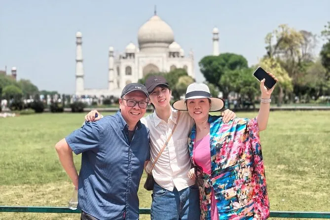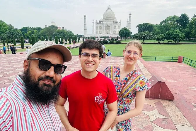 Wir sind noch vor Sonnenaufgang aus Delhi gestartet – ehrlich gesagt fühlte sich das schon wie ein kleiner Sieg an. Die Stadt schlummerte noch halb, als unser Fahrer vorfuhr – ich schaffte gerade so meinen Kaffee. Die Fahrt nach Agra war ruhiger als gedacht, nur das Summen des Autos und ein paar frühe Vögel, die vorbeiflogen. Als wir schließlich beim Taj Mahal ankamen, begrüßte uns unser Guide Rahul mit einem breiten Grinsen und konnte sich tatsächlich alle unsere Namen merken (ich schaffe das kaum im Job). Er führte uns blitzschnell an den Warteschlangen vorbei – kein Anstehen, das war fast unwirklich – und da stand es plötzlich: das Taj Mahal. Ich hatte es schon unzählige Male auf Fotos gesehen, aber wenn man davorsteht, fallen einem kleine Details auf: wie kühl der Marmor sich in der Hand anfühlt, wie die Leute trotz der Menge leiser sprechen. Rahul zeigte uns Schriftzüge an den Bögen – Koranverse aus schwarzem Marmor. Ich habe versucht, einen Buchstaben mit dem Finger nachzufahren – wahrscheinlich nicht erlaubt, aber niemand hat was gesagt.