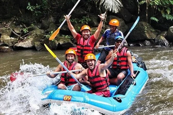 Erlebe Bali auf dem Quad durch Reisfelder und Dschungelpfade, danach Rafting auf dem Ayung-Fluss mit einem lokalen Guide. Freu dich auf matschigen Spaß, Lachen in der Gruppe, ein indonesisches Buffet-Mittagessen sowie bequemen Hoteltransfer für einen unvergesslichen Tag.