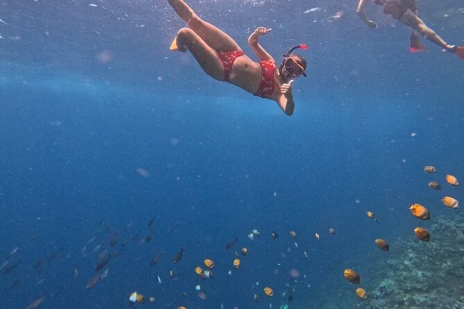 Starte mit Hoteltransfer und schnorchle in Balis Blue Lagoon zwischen bunten Fischen und ruhigem Wasser. Genieße danach ein indonesisches Mittagessen am Strand und wähle optional einen Besuch bei einem Wasserfall wie Kanto Lampo. Freundliche Guides, authentische Aromen und besondere Momente, die lange nachwirken.