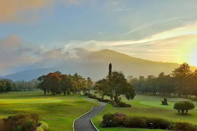 Als nächstes stand das Handara Kosaido Gate auf dem Programm. Wahrscheinlich hast du es schon auf Instagram gesehen – das große steinerne Tor mit den Bergen im Hintergrund. Aber live liegt in der Luft ein feiner Duft von nassem Gras, und man hört Golfer in der Nähe plaudern (der Golfplatz ist direkt daneben). Unser Fahrer-Guide war gleichzeitig unser Fotograf und schlug vor, ein paar lustige Posen zwischen den vorbeifahrenden Autos auszuprobieren. Es ging überhaupt nicht hektisch zu – wir hatten Zeit, kreativ zu werden.