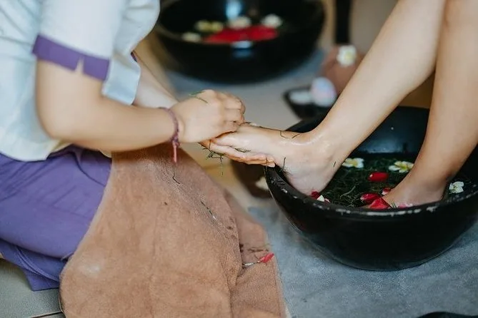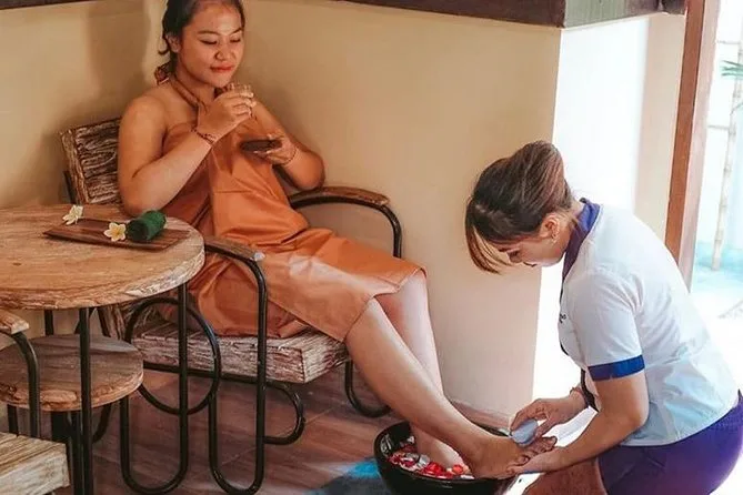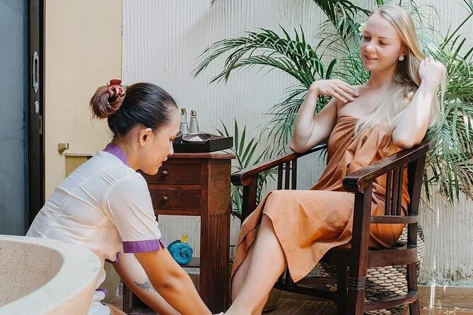 Deine Zeit beinhaltet den kostenlosen Hoteltransfer aus zentralen Gegenden wie Seminyak oder Kuta (bei Buchung für zwei oder mehr Personen), alle Spa-Utensilien vor Ort, Kräutertee oder Kaffee bei Ankunft sowie die komplette Behandlung: Thalasso-Fußwäsche, einstündige balinesische Massage mit lokalen Therapeuten, 30-minütiges Körperpeeling, Joghurt-Feuchtigkeitspflege und zum Abschluss ein privates Blumenbad für zwei, bevor es zurück zum Hotel geht.